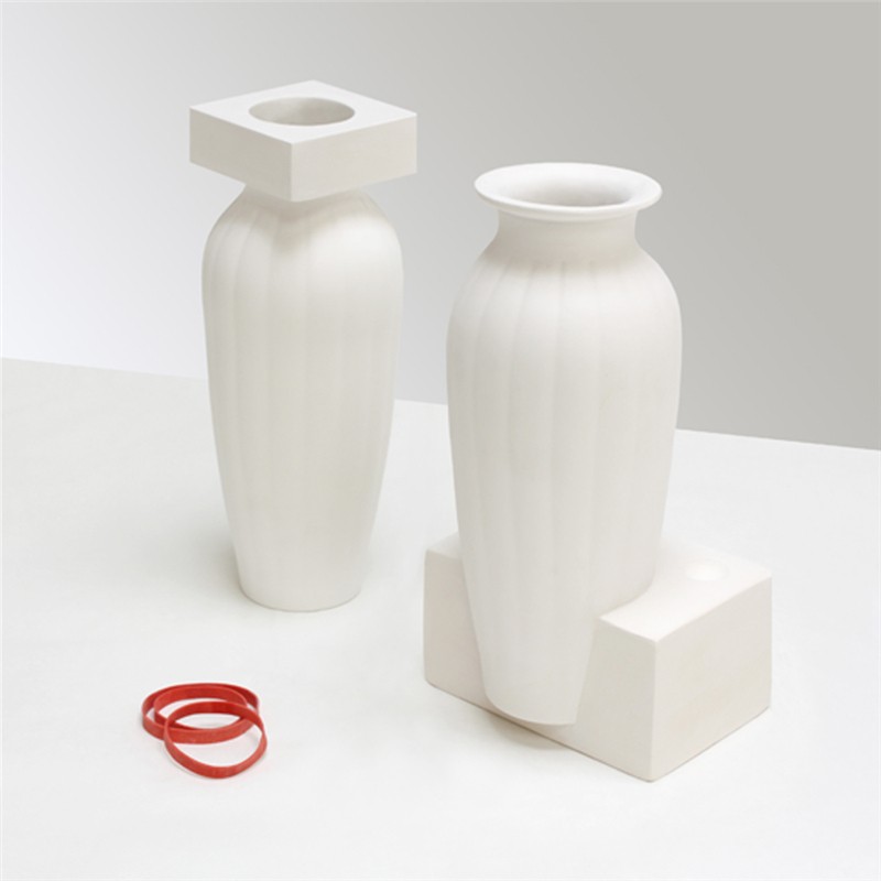 石膏注漿成型的模具通常在使用后就被丟棄。這些白色優(yōu)美剛?cè)岵?jì)的花瓶從模具中來并表達(dá)出通常不為人們所見的模具之美。